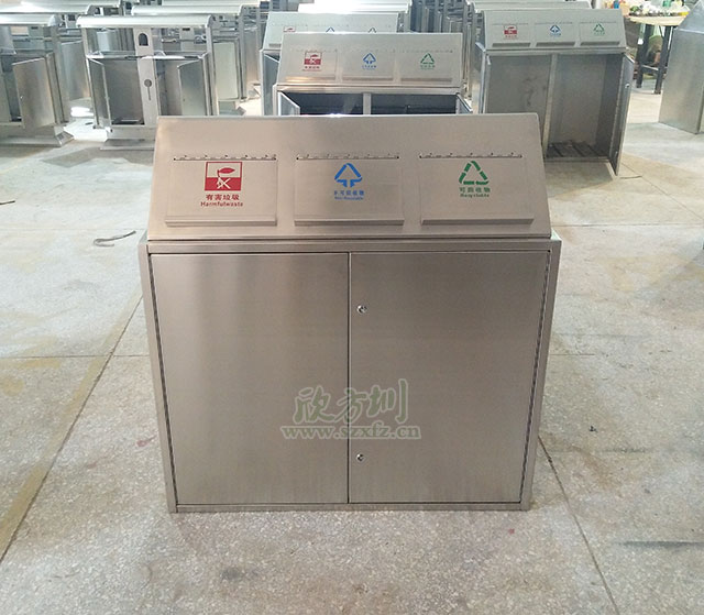 ? 干凈整潔的張家界碧桂園小區,走進大門就能看到嶄新的不銹鋼分類垃圾桶沿著小區綠化帶擺放著,不銹鋼戶外分類垃圾桶桶身干凈整潔,每只桶都蓋著蓋子,從外面看不到任何垃圾。隨著創文的推進,越來越多的市民積極參與到垃圾分類中來,共同為家園更加環保做出努力。? 這次投放在張家界碧桂園小區的是我欣方圳垃圾桶廠家生產的JP21環保分類垃圾桶,是一個由可回收垃圾桶、不可回收垃圾桶以及其他垃圾桶組成的三分類不銹鋼垃圾桶。不銹鋼分類垃圾桶本身不用噴塑所以不會出現掉色現象,能夠保證美觀,全身不銹鋼制作的分類垃圾桶還具有防火功能,堅固耐用。欣方圳不銹鋼垃圾桶特點:耐用性高 防火功能好。不銹鋼本色靚麗,給人以炫目高大尚的感覺。