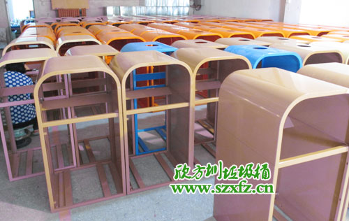 ? 3.高溫固化:目的:將工件表面的粉末涂料加熱到規(guī)定的溫度并保溫相應的時間,使之熔化、流平、固化,從而得到我們想要的工件表面效果。工藝步驟:將噴涂好的工件推入固化爐,加熱到預定的溫度(一般185度),并保溫相應的時間(15分鐘);開爐取出冷切即得到成品。? 4.裝飾處理:目的:使經(jīng)過靜電噴涂后的工件達到某一種特殊的外觀效果如:各種木紋、花紋、增光等。工藝步驟:罩光;轉(zhuǎn)印等 處理工藝噴塑。有點1.靜電噴塑工藝與傳統(tǒng)的噴漆工藝比較具有的顯著優(yōu)勢,不需稀料,施工對環(huán)境無污染,對人體無毒害;2.涂層外觀質(zhì)量優(yōu)異,附著力及機械強度強;3.噴涂施工固化時間短;4.涂層耐腐耐磨能力高出很多;不需要底漆;生產(chǎn)的各型號垃圾桶,除不銹鋼垃圾桶外,均采用噴塑工藝進行防銹處理。同時,也讓垃圾桶更加美觀,表面光潔,易于清理,不拍曬,不拍雨淋,等特殊,產(chǎn)品質(zhì)量更有保障。