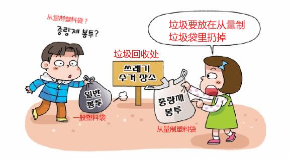 “垃圾從量制”顧名思義就是要量化垃圾,根據(jù)垃圾的量來(lái)收取處理費(fèi)用的一種制度。這個(gè)制度規(guī)定市民們要到自己所住區(qū)域的指定商店去購(gòu)買盛放垃圾的專用垃圾袋,將垃圾分類裝在不同類別的袋子中,例如:食品垃圾袋、一般垃圾袋等。垃圾也不是隨時(shí)隨地可以扔,要在規(guī)定的時(shí)間內(nèi),用專用垃圾袋把垃圾封好并投放到規(guī)定地點(diǎn),否則市民還會(huì)面臨相應(yīng)罰款。專用垃圾袋的大小不一,容量越大,價(jià)格也越貴。也就是說(shuō),韓國(guó)市民們需要花錢購(gòu)買扔垃圾的塑料袋!并且價(jià)格還不便宜,經(jīng)過(guò)2017年年初的漲價(jià)之后,目前每個(gè)家用食品垃圾袋的價(jià)格在人民幣6毛到6元之間,每個(gè)一般垃圾袋的價(jià)格在人民幣8毛到15元之間。