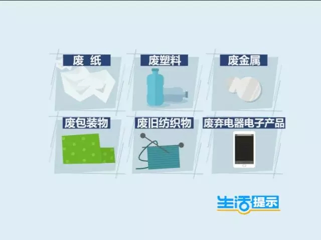 而像廢紙,廢塑料,廢金屬,廢包裝物,廢舊紡織物,廢棄電器電子產品,廢紙塑鋁復合包裝等,則都要收集好投入可回收物垃圾桶中。