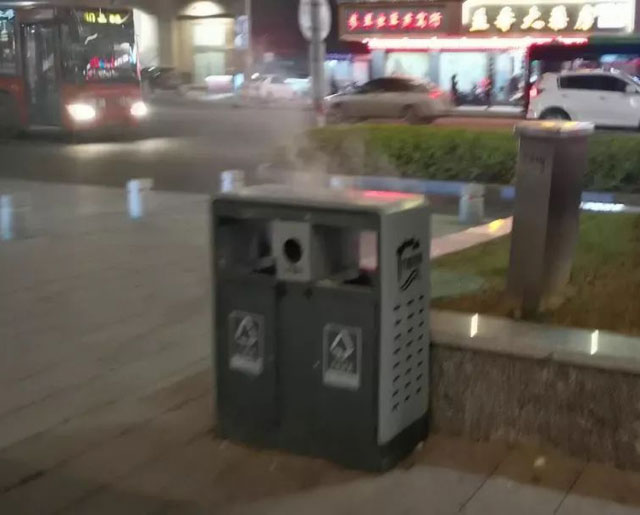 垃圾箱的設(shè)立本身是方便市民丟垃圾。但有時(shí)丟的垃圾口不是正確的位置,就極有可能造成一些特殊的情況。下面這個(gè)情況就顯得尤為危險(xiǎn)。