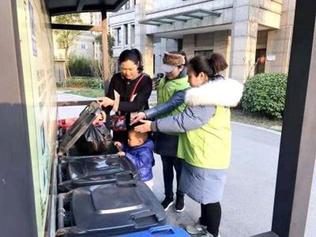 揚子頤和苑共有38座垃圾亭、210多個分類垃圾桶,投用四年了,卻仍然像新的一樣。記者隨機選了一個分類垃圾桶,在上面輕輕一抹,手一點都沒被弄臟。就在這時,保潔人員郭來妹來了。只見她一手拎著裝滿水的桶,一手拿著抹布,把垃圾桶擦了一遍又一遍。“按照規定,春、夏、秋季每天清洗一次,冬季一周清洗兩三次。”郭來妹說。古運社區主任左芙蓉介紹,針對垃圾分類后裝有廚余垃圾的垃圾桶易臟易臭的情況,他們組織志愿者協同小區物業保潔人員,對垃圾桶“勤洗澡”,確保垃圾桶干凈整潔。