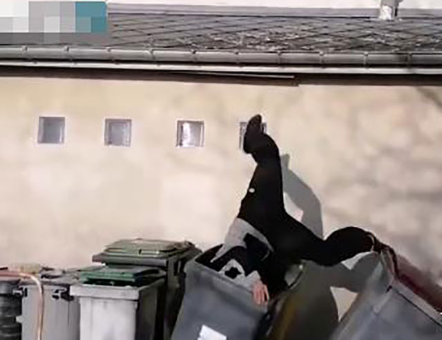 由于國(guó)內(nèi)還不具有跑酷的條件,所以跑酷這樣的運(yùn)動(dòng)在外國(guó)比較常見(jiàn)。一位外國(guó)的跑酷愛(ài)好者,最近在一次和好友的跑酷活動(dòng)中,卻不小心掉進(jìn)了垃圾桶。據(jù)這位跑酷愛(ài)好者說(shuō),當(dāng)時(shí)他輕易而舉就爬上了一堵12英尺高的圍墻,可是在準(zhǔn)備往下跳的時(shí)候,看見(jiàn)了放在圍墻下面的幾個(gè)垃圾桶,于是他就想從圍墻上跳下去,然后從垃圾桶上蹦過(guò)去??墒钱?dāng)他剛一跳下去,不慎腳下一滑,直接往另一個(gè)垃圾桶扎了進(jìn)去。不少網(wǎng)友表示,看他摔倒真是喜劇滿滿。