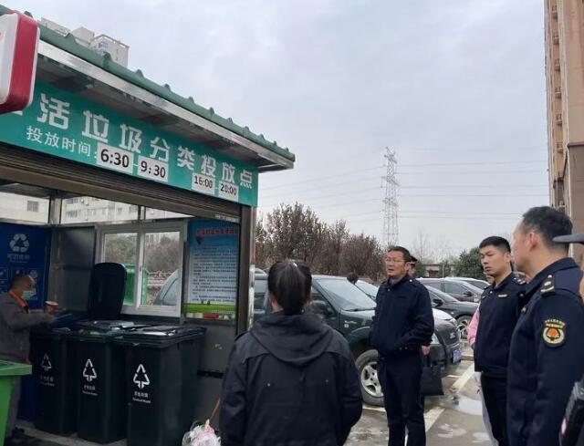 為推進航天基地生活垃圾分類工作開展,強化主管行業責任落實,航天基地城市管理和綜合執法局聯合住房交通建設局,對轄區居民小區生活垃圾分類工作進行檢查,生活垃圾分類管理中心及執法各大隊負責同志參加。 檢查以山水悅庭、牛背梁家屬院、鴻鼎福門、航天逸居等居民小區,沿街商鋪為對象,重點對垃圾分類參與率、準確率、定時定點工作落實情況、宣傳引導等多方面進行檢查。針對檢查中存在的問題,依據《西安市生活垃圾分類管理條例》相關法律法規下發《限期整改通知書》,責令其立即進行整改,并對商鋪出現的垃圾混投、無公示牌等問題開具《行政處罰決定書》,以罰促改推進分類工作縱深開展。