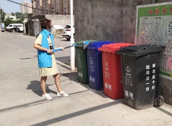 此次清潔行動,社區垃圾分類督導員用消毒液浸泡過的拖布對垃圾桶表面進行反復清洗,并用水沖洗、擦凈、晾干。在大家的相互配合下,原本臟污的垃圾桶在清洗后變得干凈明亮,消除了垃圾桶異味。