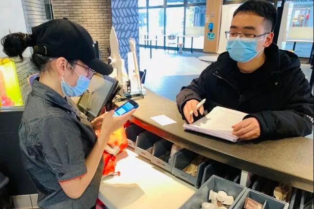 為了不影響商鋪的生意,工作人員充分利用商鋪的閑暇時間一一發放垃圾分類宣傳冊,用顯淺易懂的方式為店主講解垃圾分類知識,耐心解答店主提出的日常垃圾分類難題,同時為每家商鋪張貼了分類投放指南和垃圾桶分類標識,引導大家準確投放。在此過程中,工作人員發現雖“偉明餐廚垃圾回收”小程序已上線多時,仍有不少商戶存在不懂操作、無法登陸等問題,為此,現場工作人員不厭其煩地指導商戶進行登陸、記錄等,確保每位商戶的問題得到實質解答。