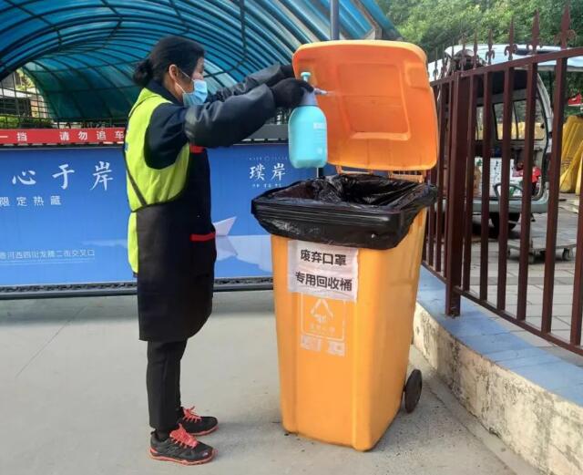 “您好,疫情期間投放垃圾請您自覺佩戴好口罩。”在陽光城小區,垃圾分類督導員正對前來投放垃圾的居民進行進一步的提示和指導。在每日上崗前,垃圾分類督導員都會洗手消毒,佩戴好口罩、手套,在保護好自身的同時,對小區各個垃圾分類投放點進行全面徹底消毒,做到不留死角,對垃圾房里里外外、仔仔細細進行清洗,不放過任何一個角落,還對垃圾房進行消殺,扎實落實消毒工作,堅決防止疫情的擴散傳播,讓社區群眾有一個健康的城市生活環境。另外在小區明顯處還設置了廢棄口罩專用桶,倡導居民使用過的廢棄口罩和防護用品要投放到專門的收集桶內。