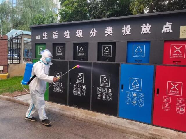 防疫期間,對垃圾分類投放點進行定時消殺作業,是小區物業垃圾分類人員的日常工作之一。工作人員每日對投放口、垃圾桶、分揀環境做好消殺,并增加對垃圾桶清洗頻率,做到不留一處死角,最大限度地控制疫情傳播風險。