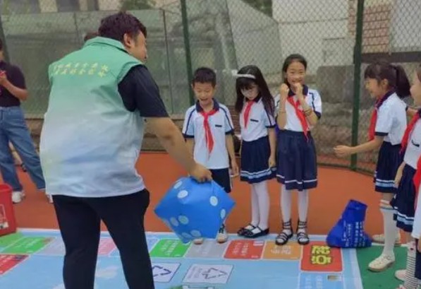 運動會共分為四個游戲環節:東南西北跑、摸石頭過河、垃圾分類飛行棋、垃圾分類小能手。四個游戲考驗大家的平衡感、反應速度、團隊合作等能力,各個環節中還融入了垃圾分類小知識。同學們積極參與其中,加油聲、吶喊聲充斥著整個賽場。