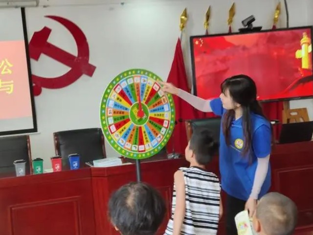 活動現場還設置了“垃圾分類大轉盤”互動游戲,參與者只需隨機轉動大轉盤,回答出指針最后指向的垃圾所屬類別,答案正確即可獲得禮品一份。大家興致勃勃,紛紛參與進來。不少居民參加完游戲,還意猶未盡地聚在一起討論、學習垃圾分類知識。