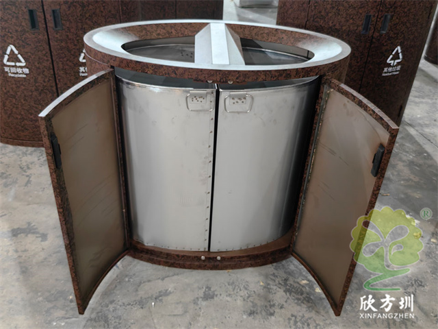 分類收納更高效:兩連體的結構將垃圾桶分為兩個獨立區域,可分別用于盛放可回收物和其他垃圾,引導顧客和工作人員進行準確分類投放,提高垃圾回收效率,助力環保事業。 節省空間又美觀:相比兩個單獨的垃圾桶,連體設計更加緊湊,占地面積小,能夠有效節省商業空間。同時,整體造型簡潔流暢,保持了視覺上的統一與和諧。