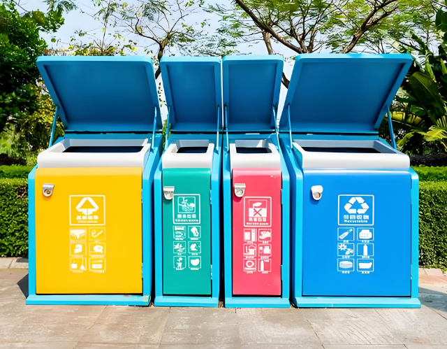 四分類系統通常遵循國內通用的垃圾分類標準,即可回收物(如塑料瓶、紙張)、廚余垃圾(如果皮、食物殘渣)、有害垃圾(如電池、藥品)和其他垃圾。每個分類單元通過醒目的顏色(如藍色、綠色、紅色、灰色)和圖形標識區分,結合簡明文字說明,降低公眾誤投率。研究表明,清晰的視覺提示可使垃圾分類準確率提升30%以上。