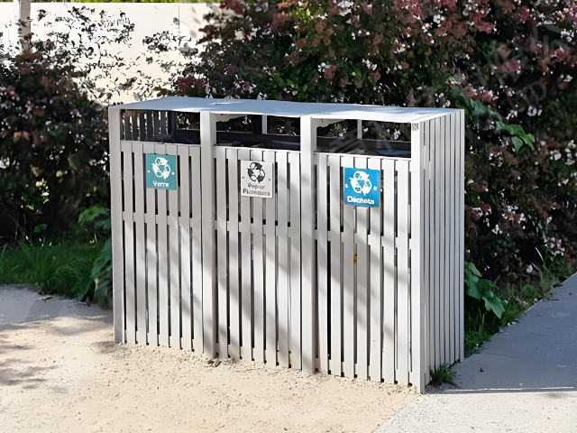 鋼木協(xié)奏曲戶外公園三分類垃圾桶的生態(tài)美學(xué)
