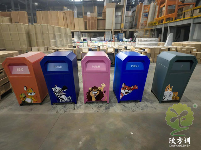 讓環保成為城市的可愛風景定制UV打印卡通不銹鋼分類垃圾桶