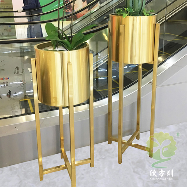 二、商場電鍍土豪金不銹鋼花架的擺放位置
