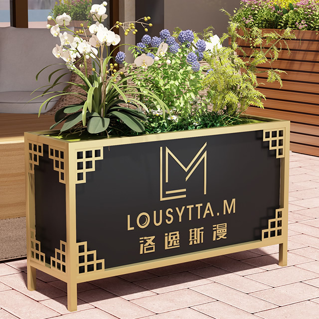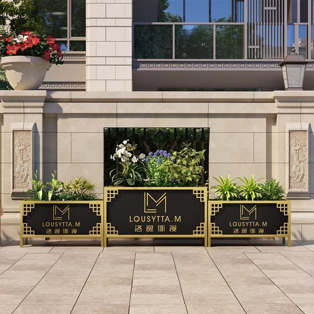二、戶(hù)外電鍍鈦金長(zhǎng)方形不銹鋼花箱的擺放位置