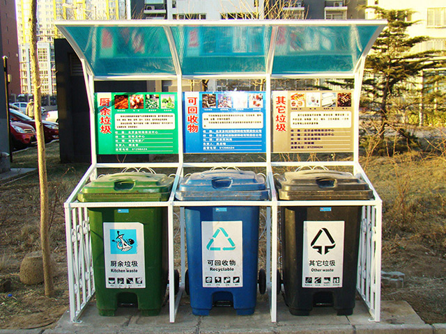 目前,戶外小區(qū)三分類收集站是城市生活垃圾處置的主流趨勢,也是現(xiàn)代城市文明進(jìn)步的標(biāo)志之一,有利于提升垃圾清運效率,便于再生資源的回收利用,減少環(huán)境污染,緩解環(huán)衛(wèi)工人常規(guī)保潔的壓力。垃圾分類亭,分為地基基礎(chǔ)設(shè)施、公益宣傳欄、立柱、頂棚等,亭內(nèi)設(shè)置可回收、有害垃圾、廚房垃圾和其他垃圾等垃圾桶,垃圾桶及宣傳欄配有垃圾分類的宣傳標(biāo)語,廣大群眾可以根據(jù)垃圾桶的提示標(biāo)語,將廢棄的生活垃圾投放到對應(yīng)的垃圾桶中。