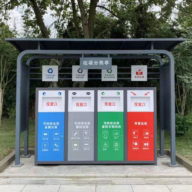 目前,戶外烤漆大型垃圾分類站是城市生活垃圾處置的主流趨勢,也是現代城市文明進步的標志之一,有利于提升垃圾清運效率,便于再生資源的回收利用,減少環境污染,緩解環衛工人常規保潔的壓力。垃圾分類亭,分為地基基礎設施、公益宣傳欄、立柱、頂棚等,亭內設置可回收、有害垃圾、廚房垃圾和其他垃圾等垃圾桶,垃圾桶及宣傳欄配有垃圾分類的宣傳標語,廣大群眾可以根據垃圾桶的提示標語,將廢棄的生活垃圾投放到對應的垃圾桶中。