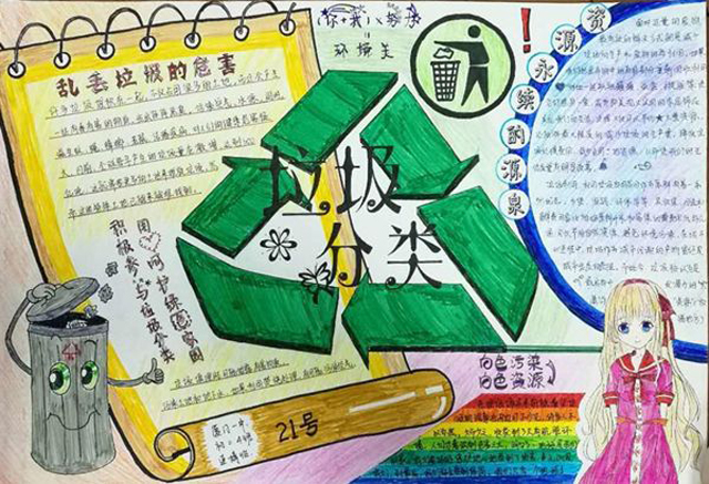 為什么要實行垃圾分類呢?因為我國每人每年平均產生300公斤垃圾;許多城市都面臨垃圾圍城的局面;而生活垃圾被認為是最具開發潛力的、永不枯竭的“城市礦藏”,是“放錯地方的資源”;垃圾分類后被送到工廠而不是填埋場,既可以減少占地,降低垃圾處理成本,又避免了填埋或焚燒所產生的環境污染,還可以變廢為寶;垃圾分類收集是垃圾資源化利用的前提和基礎,是發展循環經濟的突破口,具有社會、經濟、生態三方面的效益。以下生活垃圾分類手抄報有分類垃圾桶網收集整理,請勿作商業用途。
