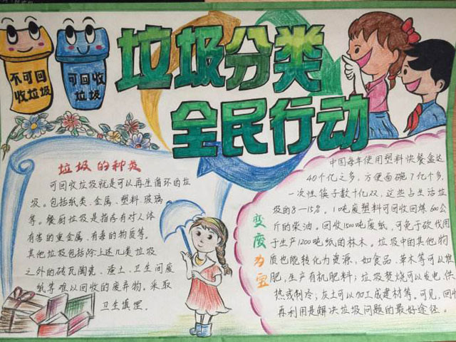 我們每天都會產生很多垃圾,這些垃圾不能隨意丟棄,要扔進相應的垃圾桶里面,而且要分好類。玻璃,金屬,塑料,紙類垃圾要放在可回收垃圾桶里面,其他的垃圾仍在不可回收垃圾桶里面。下面是由分類垃圾桶廠家收集整理的小學生提倡垃圾分類手抄報。