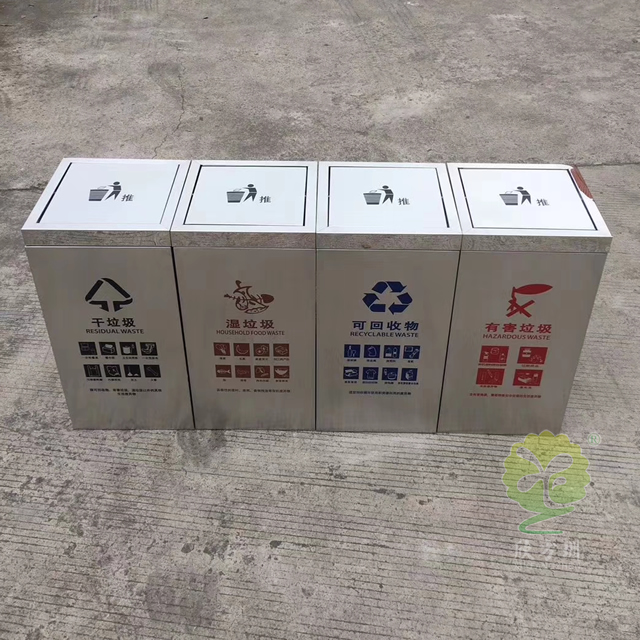 方形組合搖蓋式不銹鋼分類垃圾箱看起來對稱而協調,避免了混亂、復雜的感官,能滿足人們尋求秩序、規律的心理需求,簡約而不簡單就是這款垃圾桶外形的真實解讀。垃圾桶內部使用優質玻璃鋼內桶,玻璃鋼是一種被廣泛應用的復合材料,使用玻璃鋼纖維和樹脂聚合而成,具有性能穩定、機械強度高、耐腐蝕的優點,非常適合裝載垃圾。桶身裝有側門,使用三角鑰匙開門,門后有優質彈簧,方便內桶的放進與取出。