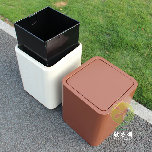 室內仿木紋方形不銹鋼果皮箱的特點: