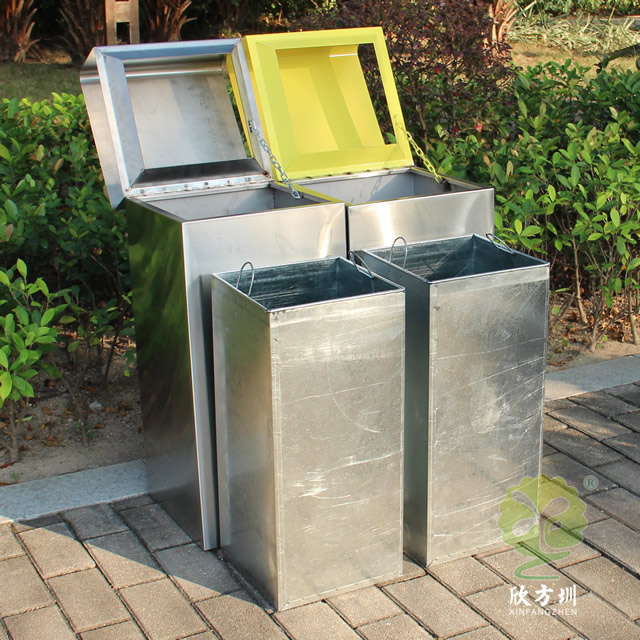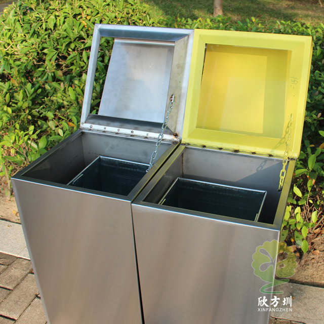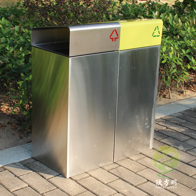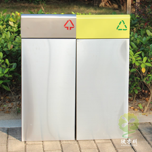 戶外不銹鋼雙分類垃圾回收箱生產(chǎn)廠家: