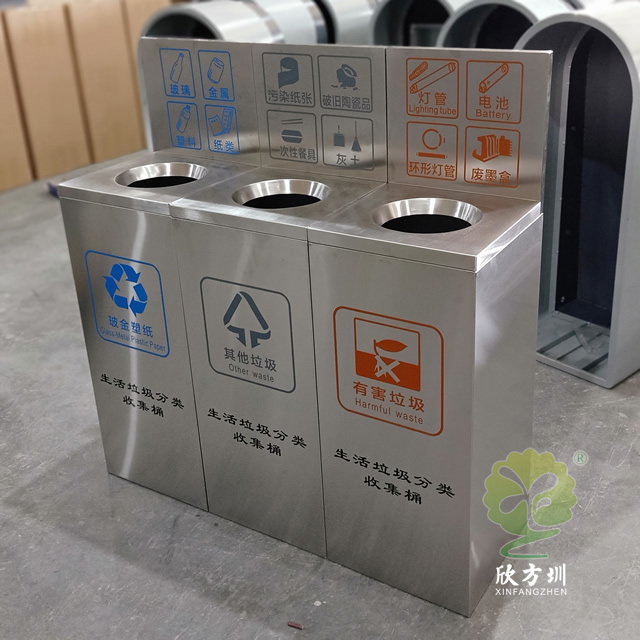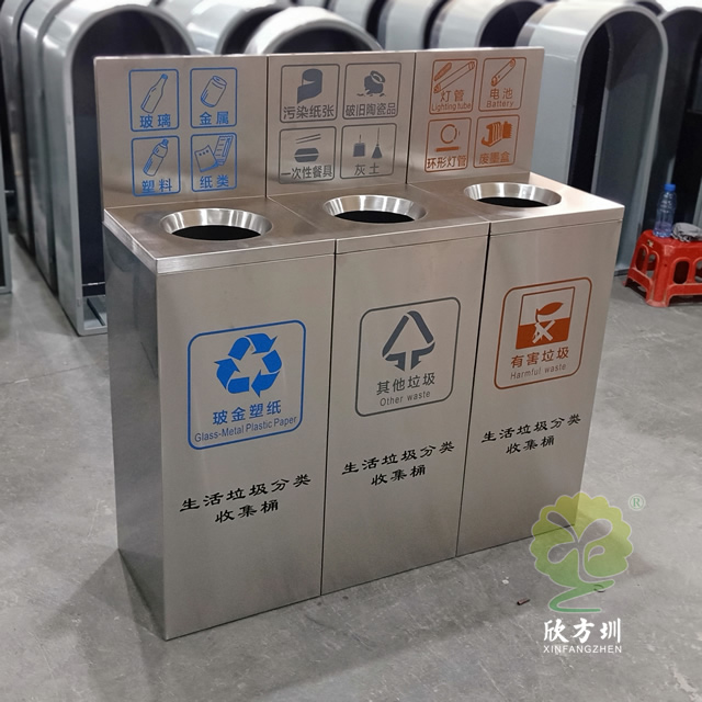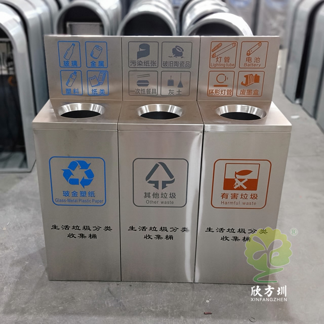 方形組合式不銹鋼分類回收箱是欣方圳設計生產的一款經典熱銷垃圾桶,這款垃圾桶雖然使用鋼板制作而成,但是外形采用了方形分類,使其看起來有一股自然大方氣質,特別適合各種歷史景區、室內公園、商場、別墅小區、學校廣場等場景使用。這款垃圾桶外表經過防腐工藝處理,防水防腐蝕、經久耐用、工藝精湛、物美價廉。如果你對這款垃圾桶感興趣,請直接聯系我們報價。