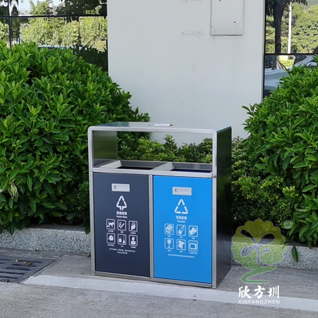 戶外連體四色不銹鋼分類垃圾桶可以選用201/304不銹鋼板制作,戶外方形四分類設計,正面門板采用了磁吸式下拉開門可以取出內筒,四個門板使用了四種噴塑顏料上色,噴塑了灰色、藍色、紅色、綠色絲印對應的國家最新分類標識,開料前期頂部可以選擇性需不需要煙灰盅,可以定制兩分類、三分類、五分類的這款垃圾箱。不銹鋼連體垃圾桶是欣方圳設計生產的一款經典熱銷垃圾桶,這款垃圾桶雖然使用不喜歡制作而成,但是外形采用了方形分類,使其看起來有一股自然大方氣質,特別適合各種歷史景區、戶外公園、別墅小區、學校廣場等場景使用。這款垃圾桶外表經過防腐工藝處理,防水防腐蝕、經久耐用、工藝精湛、物美價廉。如果你對這款垃圾桶感興趣,請直接聯系我們報價。