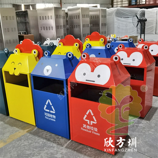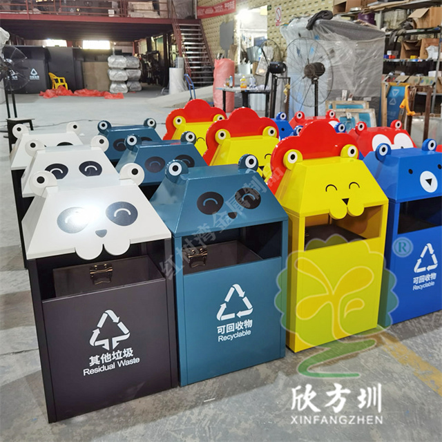 動物卡通造型彩色不銹鋼分類垃圾桶