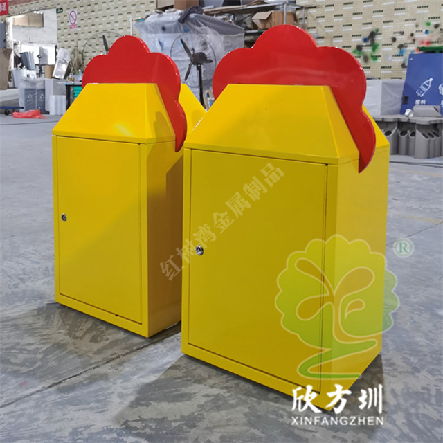 動物卡通造型彩色不銹鋼分類垃圾桶采用了1.00mm厚的304不銹鋼板制造而成,戶外方形彩色動物造型設計,每個垃圾桶擁有不同的動物造型,有猴子、獅子、熊貓等造型,桶身表面噴涂噴塑了紅色、藍色、黃色、深綠色、黑色,背面帶垃圾桶門板可以使用三角鑰匙開門取出內筒,正面絲印了最新國標分類標識。