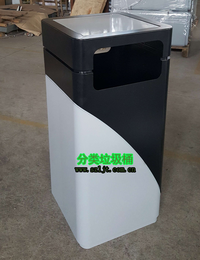 高檔烤漆室內鋼制垃圾桶型號:E89,規格:Φ250*650mm。采用優質冷軋鋼材料經激光切割剪鈑下料、折彎、沖壓、焊接、打磨、等工藝:表面經過除油、噴砂防銹處理后,再進行酸洗磷化處理;表面清理干燥后整體進行靜電噴涂或烤漆處理,靜電噴涂是經過流水線高溫固化爐固化后再出爐冷卻,加工后的塑粉附著力強,不易剝落,這樣戶外防銹效果才會好。