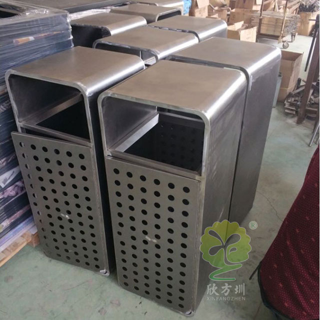 廠家批發(fā)鋼板沖孔垃圾桶采用優(yōu)質(zhì)冷軋鋼材料經(jīng)激光切割剪鈑下料、折彎、沖壓、焊接、打磨、等工藝:表面經(jīng)過(guò)除油、噴砂防銹處理后,再進(jìn)行酸洗磷化處理;表面清理干燥后整體進(jìn)行靜電噴涂或烤漆處理,靜電噴涂是經(jīng)過(guò)流水線高溫固化爐固化后再出爐冷卻,加工后的塑粉附著力強(qiáng),不易剝落,這樣戶外防銹效果才會(huì)好。