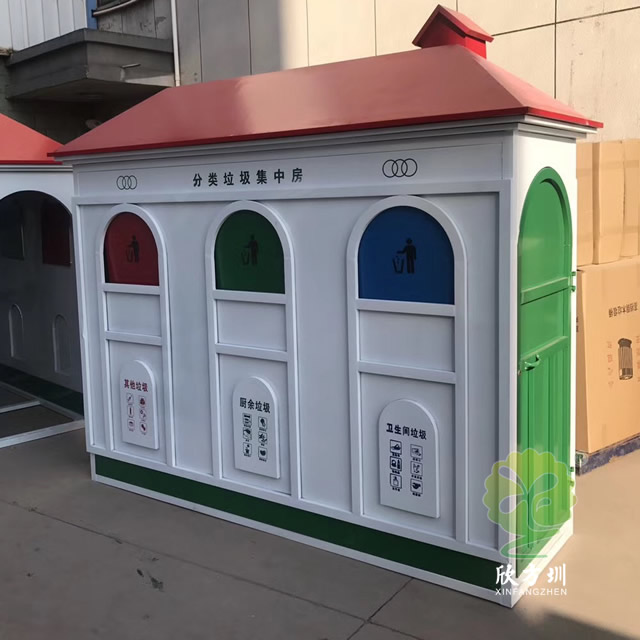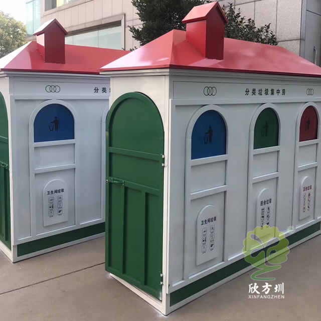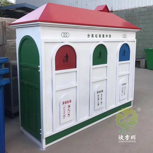 戶外三分類噴塑鋼制垃圾屋產品詳情: |