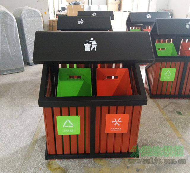【產品型號】:玻璃鋼內桶鋼木分類垃圾桶XFZ-G64