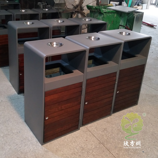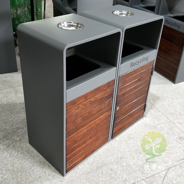【產品顏色】:以山樟木的原色黃色為主色,覆蓋于桶身;垃圾桶的邊緣的鋼板立柱使用黑色;桶蓋適用黃黑藍三色,顏色對比鮮明和諧,簡潔大方,實用美觀,還可根據客戶需求定制。