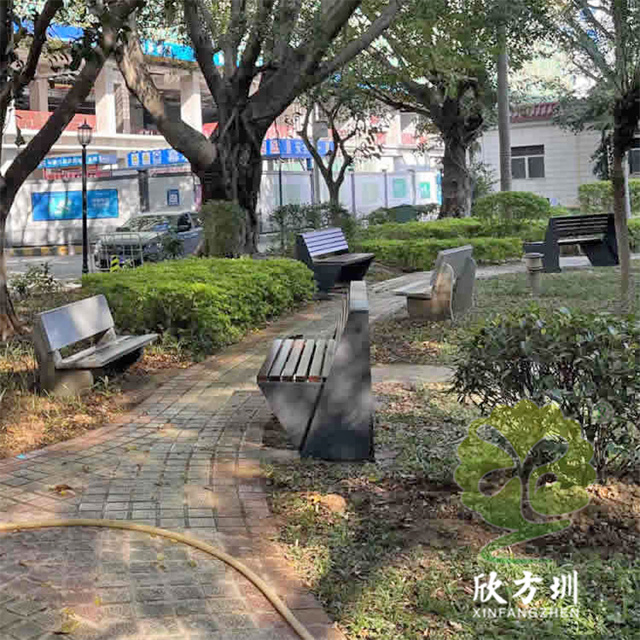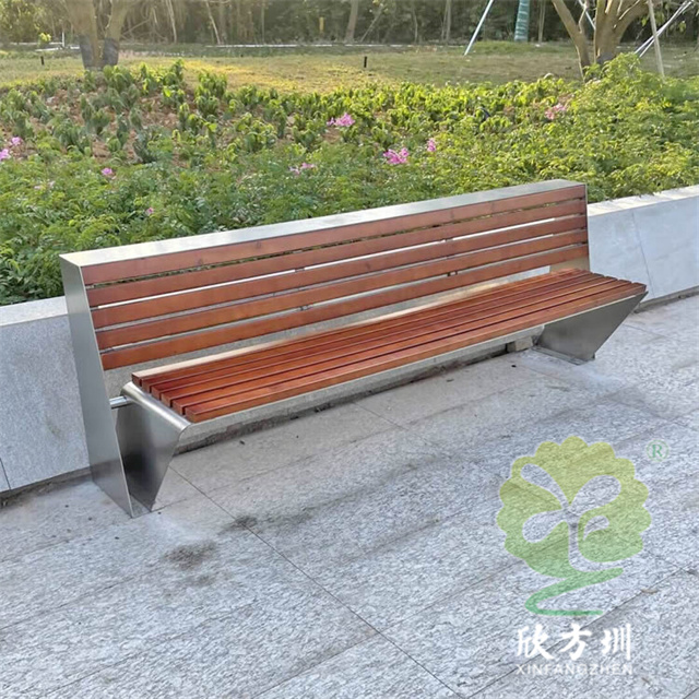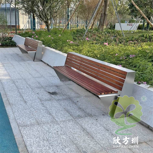 不銹鋼座椅公園椅:整體外觀和普通的公園椅座椅一樣,但是該公園椅座椅的椅條由防腐木換成了等長的不銹鋼鋼柱,帶有靠背設(shè)計,整體框架采用一體化焊接技術(shù),美觀又耐用。